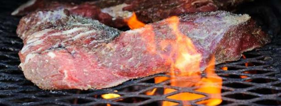 Meat is cooked on the grill outside tin roof bbq restaurant in lodi california on monday march 14 2016.